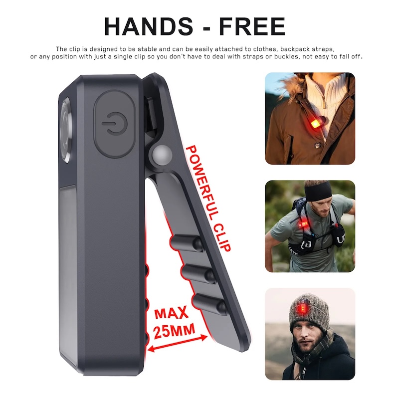 Clip-on LED Lygte 3-i-1 Genopladelig