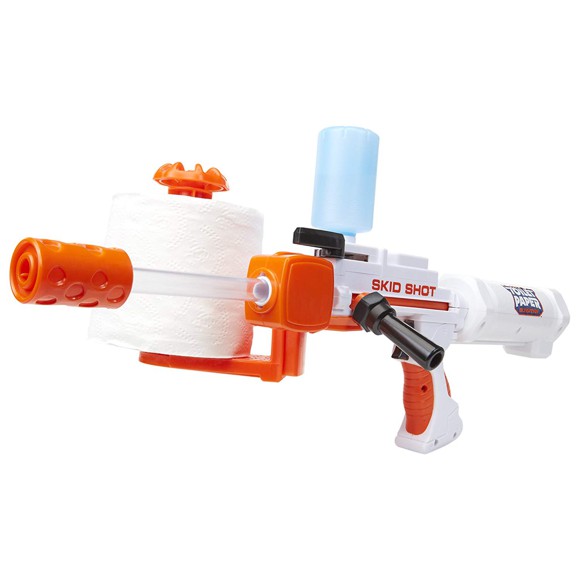 - Indeholder 1 Toilet Paper Blaster, samt 3 målskiver på emballagen
